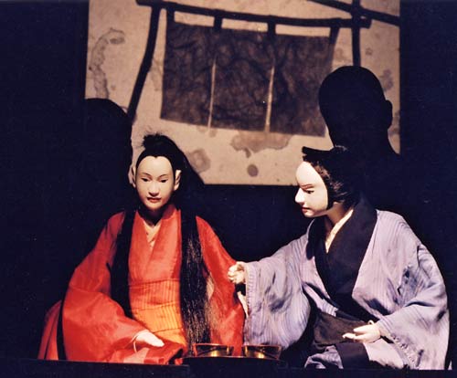 Die Umsetzung dieser Erzählung als Figurenspiel reizte uns zum Einem als Ausdruck unserer gemeinsamen Liebe und Bewunderung für die japanische Kunst und Ästhetik, und zum Anderen als Herausforderung; unsere erworbenen Kenntnisse in Japan einzusetzen. Denn Ralf Wagner war mit der Bau- und Schnitztechnik und ich mit der Spielweise vertraut, die wir in Osaka bzw. in Awaji gelernt hatten.