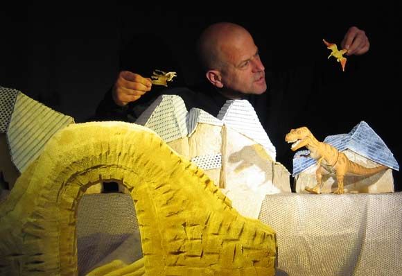 Die Bühne gibt Einblick in zwei Parallelwelten. Das Theater macht die Zeitdifferenz wirkungslos. Wir erleben die einen, die ihren Geschäften nachgehen und gemütlich miteinander plaudern. Wir sehen die anderen bei der Nahrungssuche und beim fröhlichen Feiern.
